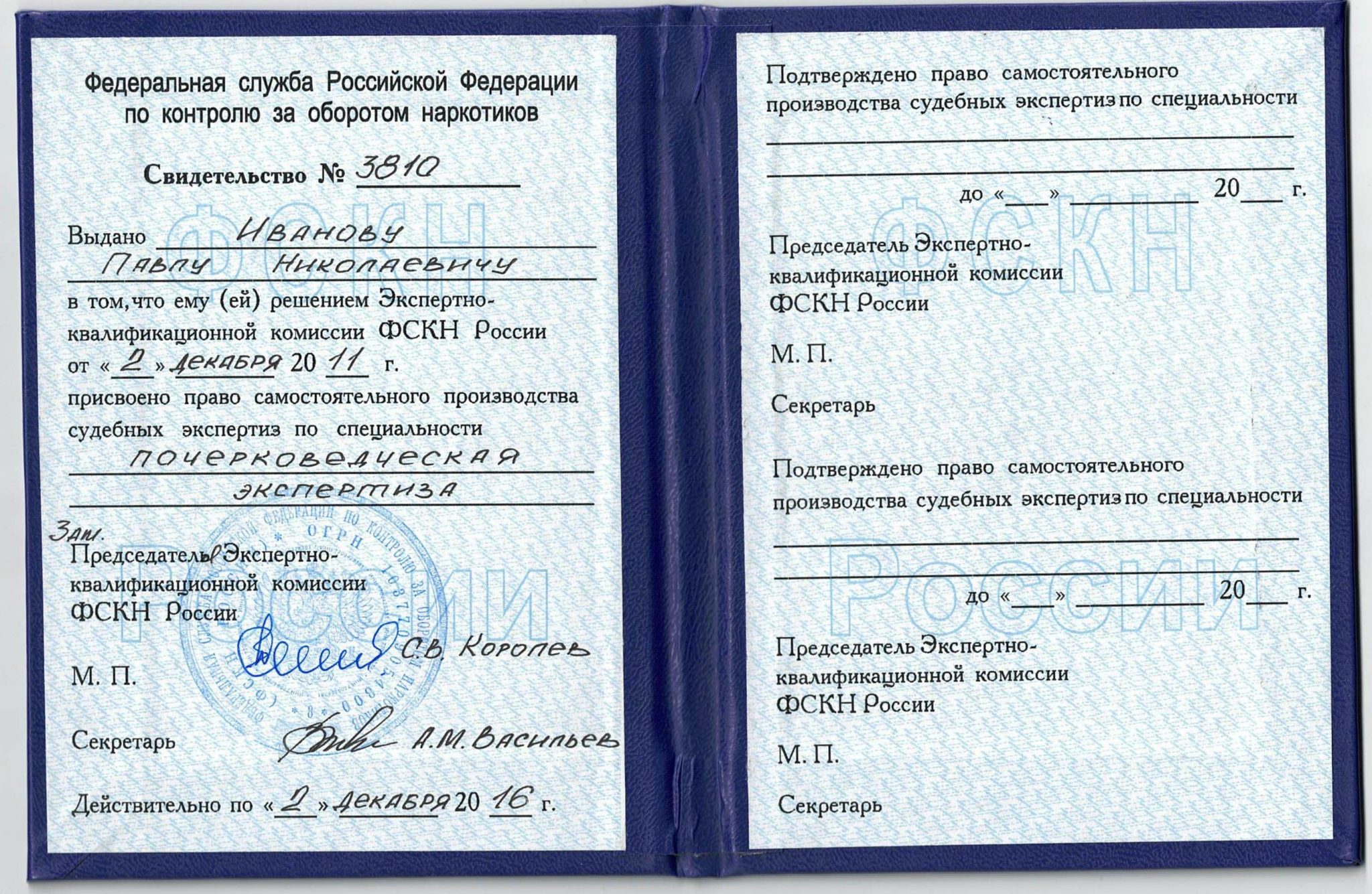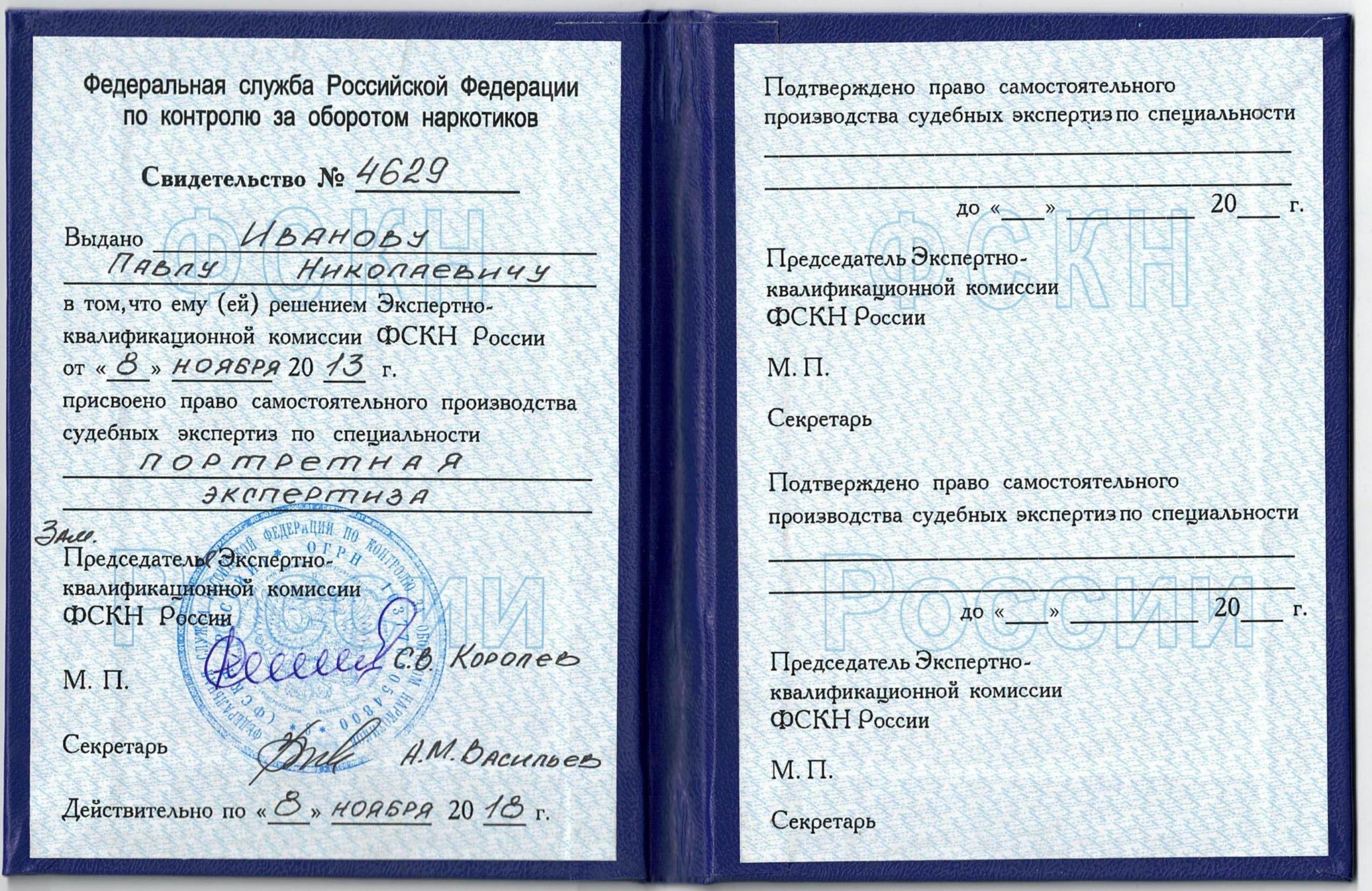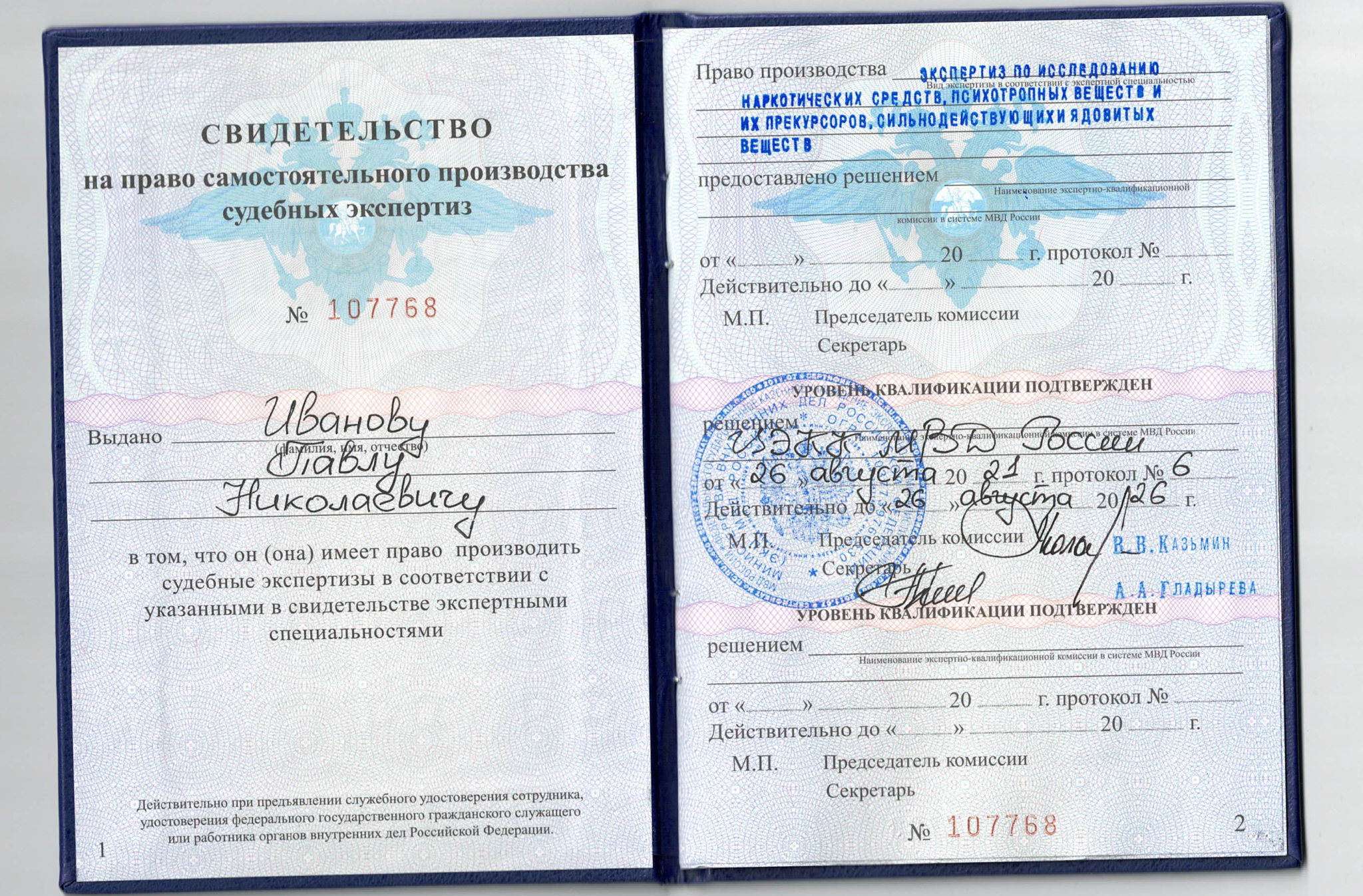 Стаж работы по специальности – с 2003 года; неоднократно проходил обучение в ЭКУ ФСКН России и ЭКЦ МВД России, Министерстве юстиции США.